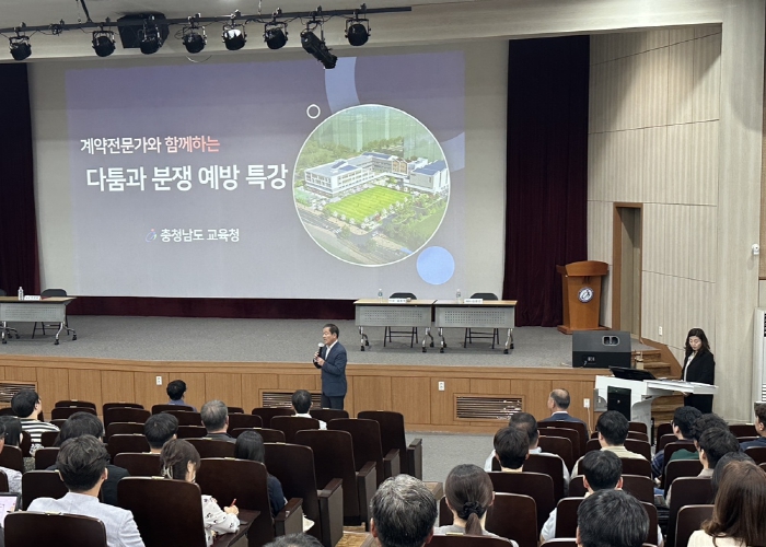 [무한뉴스=정민정 기자] 충남교육청은 26일, 건설공사 계약 과정에서 발생할 수 있는 다양한 법률적 분쟁과 채권 문제를 예방하고, 담당자의 전문성을 강화하기 위한 특강을 충남교육청교육연수원(공주)에서 실시했다고 밝혔다.