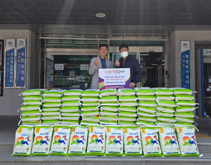 [무한뉴스=정민정 기자] 대전 대덕구 비래동은 행복한 이비인후과(원장 문정기)로부터 가정의 달을 맞아 어려운 이웃을 위해 10kg 백미 100포(300만원 상당)를 기탁받았다고 밝혔다.