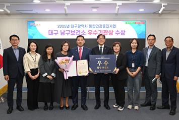 [무한뉴스=최진수 기자] 대구 남구는 지난 16일 ‘2025년 대구광역시 보건소 통합건강증진사업 성과공유회’에서 남구보건소가 우수기관으로 선정되어 대구광역시장 표창을 받았다고 밝혔다.