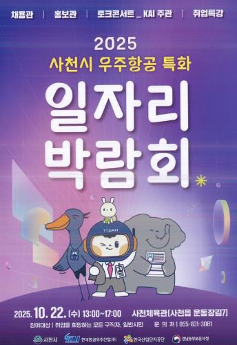 [무한뉴스=최진수 기자] 사천시는 오는 10월 22일 사천체육관에서 항공산업 중심의 청년 고용기회 확대를 위해 ‘2025년 사천시 우주항공특화 일자리박람회’를 개최한다.