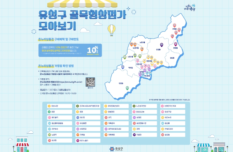 정용래 유성구청장은 “이번 지정 요건 완화로 생활권 중심의 골목형상점가 지정이 확대될 것으로 기대한다”라며 “골목형상점가를 중심으로 소상공인의 매출 증대와 고객 유입 확대를 위한 상권 활성화 여건을 강화하겠다”라고 말했다.