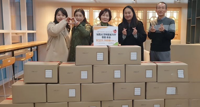 후원물품은 새롬에프에스(주)가 지원한 닭고기 가공품(치킨너겟) 20박스 내외로, 세종시사회서비스원은 기부 취지에 맞춰 현장 일괄 배분 방식으로 전달했다.
