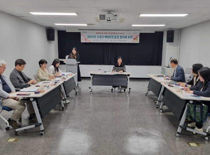 [무한뉴스=최진수 기자] 대구 수성구는 지난 25일, 여성안전 증진사업의 통합적인 운영을 도모하고, 여성친화도시 대표 안전증진 사업인 ‘뚜비가 지키는 안심길 조성’ 논의를 위해 2025년 수성구 여성안전 증진협의체 회의를 개최했다.