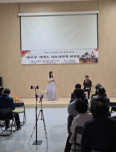 [무한뉴스=최진수 기자] 청도군은 지역 문화예술 활성화를 위해 마련한 ‘청도 싱그린 버스킹과 함께 하는 이호우·이영도 시낭송회’를 지난 2025년 11월 29일 오후 2시 30분, 유천극장에서 개최했다. 유천극장은 이호우·이영도 시인의 생가 인근에 자리한 지역 대표 문화공연장으로, 다양한 생활문화 프로그램이 열리는 공연 공간이다.