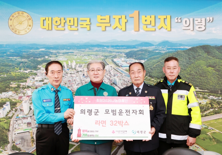 [무한뉴스=최진수 기자] 의령군은 지난 30일, 연말 이웃돕기를 위해 의령군 모범운전자회가 라면 32박스(100만 원 상당)를 기탁했다고 밝혔다.
