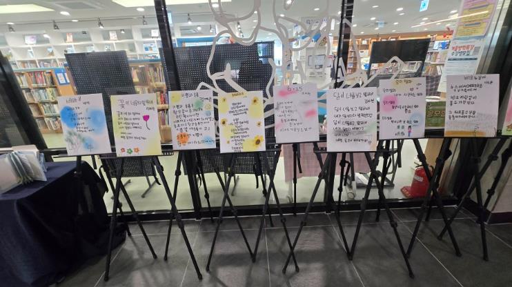 전시 작품은 ▲‘AI드로잉 애니메이션 제작’ 프로그램에서 캔바(CANVA)를 활용해 제작한 동화책, ▲‘개성만점 손글씨’ 프로그램에서 자작시와 필사를 통해 완성한 시화 작품, ▲‘쓰기로 표현력 키우기’ 프로그램에서 고사성어를 주제로 제작한 팝업책 등이다.