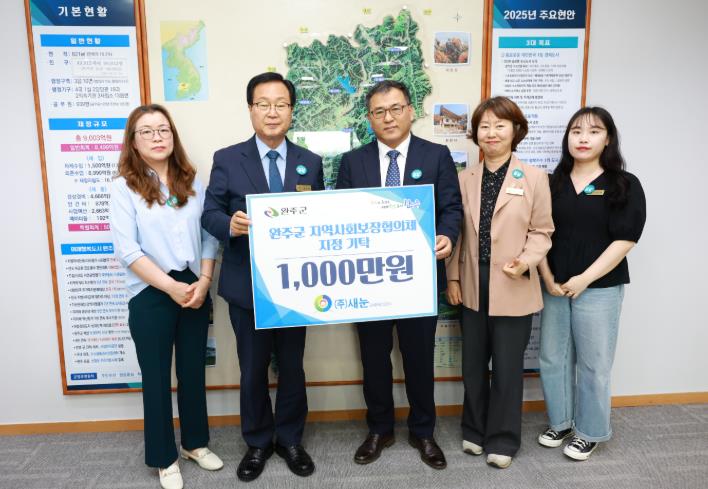 [무한뉴스=정민정 기자] ㈜새눈이 지난 19일 전북사회복지공동모금회를 통해 완주군 지역사회보장협의체에 성금 1,000만 원을 전달했다.