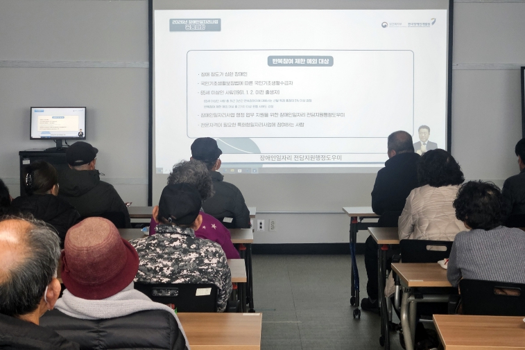 이번 교육은 장애인 일자리 사업에 대한 이해를 돕는 사업 안내를 비롯해 참여자들이 근무 현장에서 안전하게 활동하고 원활하게 업무를 수행할 수 있도록 안전보건교육, 성희롱 예방 교육, 장애인 인식 개선 교육 등으로 이뤄졌다.