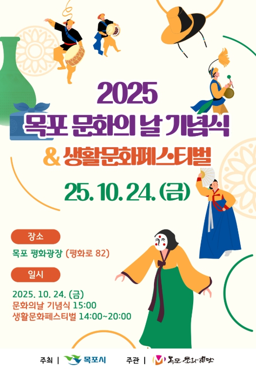 [무한뉴스=정민정 기자] 목포문화재단은 오는 10월 24일 오후 2시 평화광장에서 ‘2025 목포 문화의 날 기념식 및 생활문화페스티벌’을 개최한다.