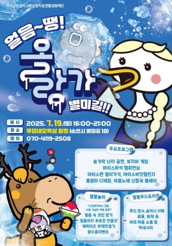 [무한뉴스=정민정 기자] 순천시는 오는 19일 오후 4시부터 9시까지 원도심 별미길 루미네오락실 일대에서 원도심 상권 활성화와 소비 촉진을 위한 문화행사 '얼음~땡! 올랑가?! 별미길!!'을 개최한다고 밝혔다.