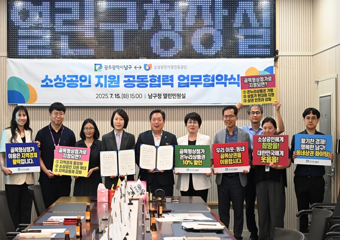 [무한뉴스=정민정 기자] 광주광역시 남구는 관내 소상공인의 경쟁력 강화와 지역경제 활성화를 위해 소상공인시장진흥공단 광주전남제주지역본부와 손잡고 골목형 상점가 및 전통시장 활성화 지원 사업을 공동으로 추진한다.