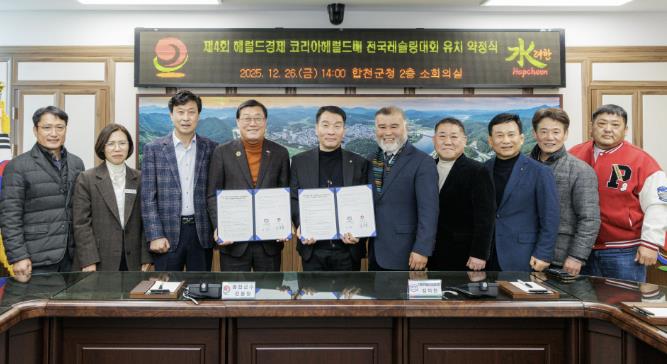 [무한뉴스=최진수 기자] 합천군은 12월 26일 합천군청에서 ‘제4회 헤럴드경제 코리아헤럴드배 전국레슬링대회 및 제4회 전국생활체육 레슬링대회’ 유치 협약을 체결했다고 밝혔다.