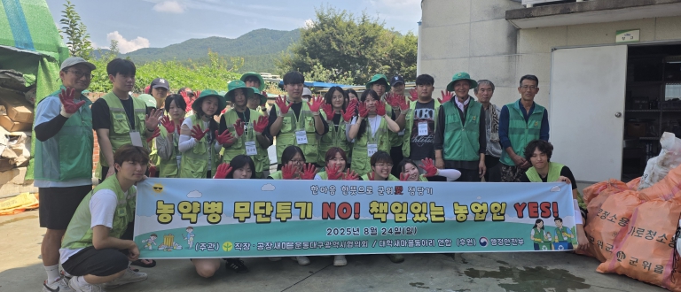 이번 봉사활동은 농촌 일손 돕기와 환경정화에 기여하기 위해 진행됐으며, 참여한 대학생들은 △대추 수확 작업 △열무김치 담그기 △폐농약통 분류수거 작업등을 함께하며 구슬땀을 흘렸다. 특히 학생들이 의흥면 새마을부녀회와 함께 담근 열무김치는 각 경로당에 전달돼 따뜻한 나눔의 의미를 더했다.