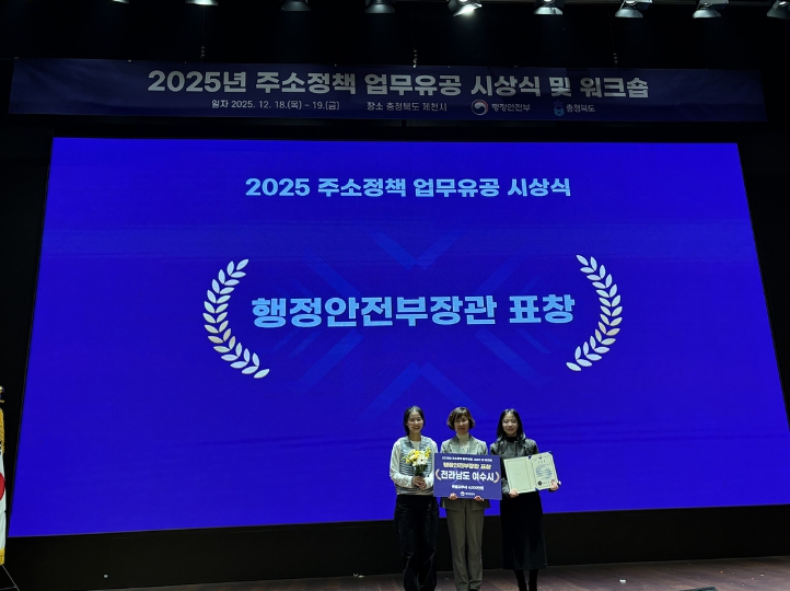여수시, 2025년 주소정책 업무 유공 ‘우수기관’ 선정…행안부 장관 표창 수상
