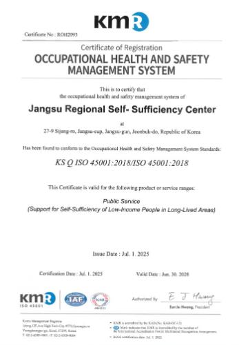 | ▲ 장수지역자활센터 (iso45001 인증서) |