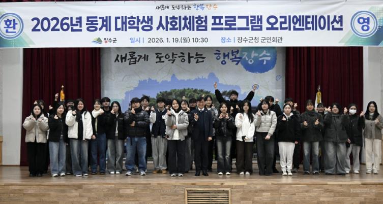 [무한뉴스=정민정 기자] 장수군은 19일 군청 군민회관에서 2026년 동계 대학생 사회체험 프로그램 ‘오리엔테이션’을 진행하고 3주 간의 행정체험 프로그램을 공식 시작했다고 밝혔다.