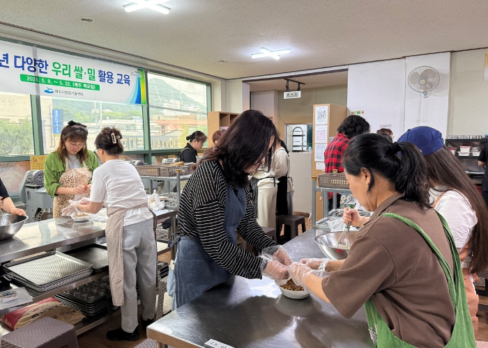교육은 쌀, 밀, 쑥, 옥수수 등을 활용해 쑥 파운드케이크, 인절미 쿠키, 옥수수 머핀을 만드는 베이킹 실습으로 진행됐으며, 교육생들은 실생활에서도 적용할 수 있는 농산물 조리 방법을 익혔다.