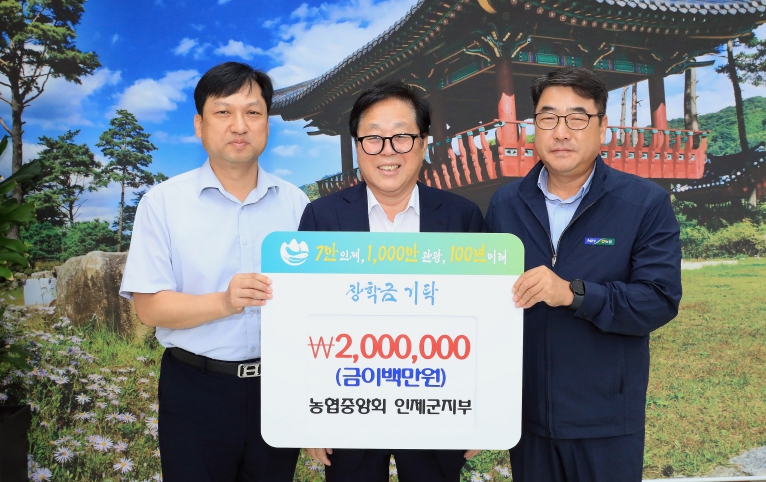 [무한뉴스=정민정 기자] 농협중앙회 인제군지부(지부장 박진호)는 7월 24일 10시 인제군청을 방문해 장학금 2백만원을 기탁했다.