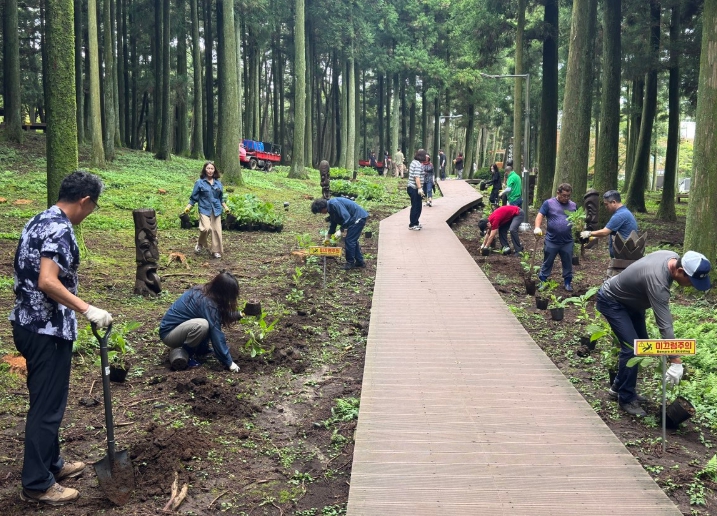 [무한뉴스=정민정 기자] 제주시 절물생태관리소는 16일 절물자연휴양림에서 ‘수국 식재 행사’를 개최했다.