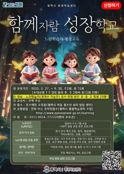 [무한뉴스=정승훈 기자] 평택시는 오는 27일 ‘느린학습자 평생교육’ '함께자람 성장학교' 강좌를 개강한다고 밝혔다.