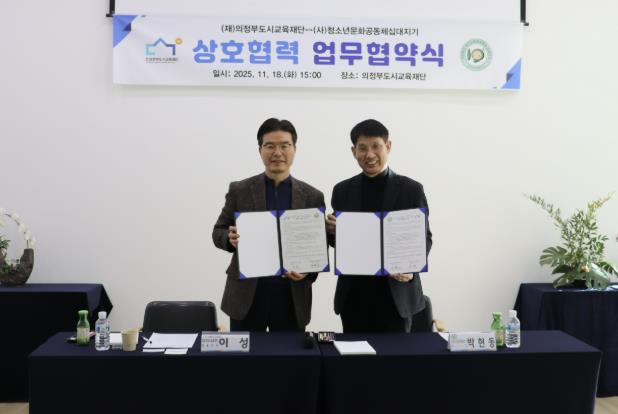 [무한뉴스=정승훈 기자] 의정부도시교육재단은 지난 11월 18일, 사단법인 청소년문화공동체 십대지기와 위기청소년을 조기에 발굴하고 지원하기 위한 업무협약(MOU)을 체결했다.