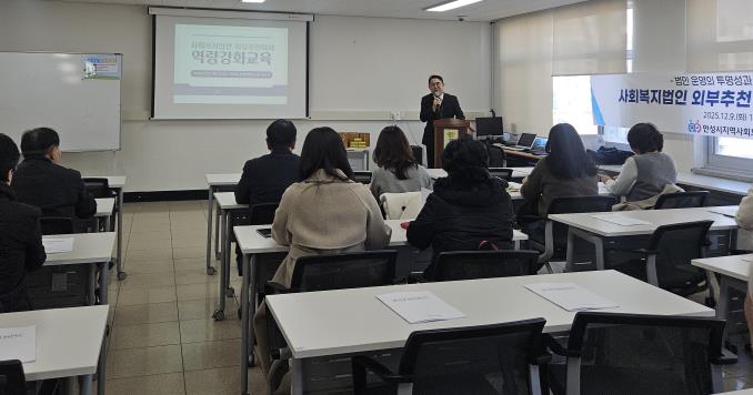 [무한뉴스=정충근 기자] 지난 9일, 안성시지역사회보장협의체는 한경국립대학교 산학협력관에서 ‘사회복지법인 외부추천이사 및 후보의 역량강화 교육’을 진행했다.