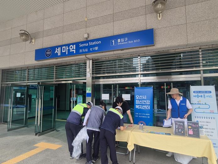 | ▲ 오산시정신건강복지센터, 세마역에서 생명존중안심마을 자살예방 합동 캠페인 진행 |