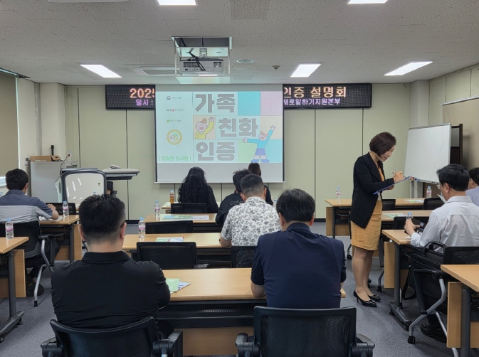 이날 설명회에는 가족친화인증제도에 관심있는 관내 16개 기업의 18명 기업인들이 참석한 가운데 가족친화인증을 준비하는 기업 대상으로 인증제도 및 심사기준 등 사업 전반에 대한 안내, 그룹컨설팅이 진행됐다.