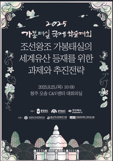 [무한뉴스=정민정 기자] 충청남도와 충남역사문화연구원(원장 장기승)은 오는 9월 25일, 청주 오송 C&V센터에서 ‘조선왕조 가봉태실 세계유산 등재를 위한 과제와 추진 전략’이라는 주제로 국제학술대회를 개최한다. 이번 학술대회는 충청남도, 충청북도, 경상북도가 공동 주최하고, 각 도가 출연한 국가유산 분야 연구기관이 공동 주관한다.