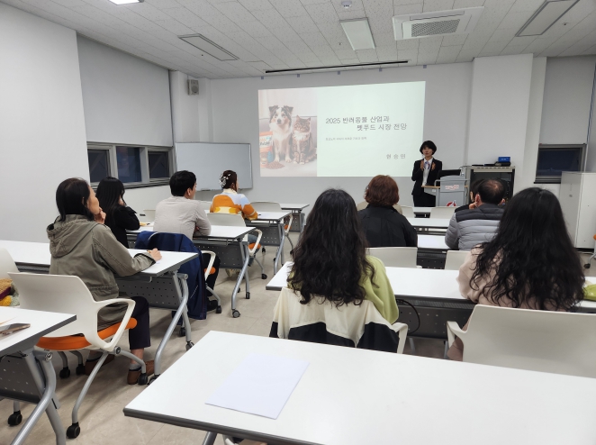 이날 강의는 반려동물을 가족처럼 여기는 인식 변화와 함께 급성장 중인 산업 현황을 소개하며, 펫푸드의 성분과 제조 방식, 안전 기준 등에 대한 실용적 정보를 제공해 참석자들의 높은 관심을 끌었다. 특히 수제 간식 만들기와 창업 관련 내용은 퇴직 후 제2의 인생을 설계 중인 참석자들에게 실질적인 도움이 됐다는 평가를 받았다.