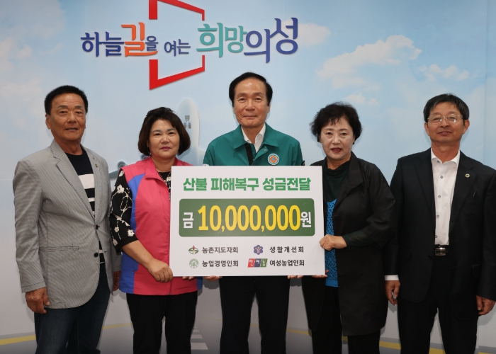 특히, 성금을 기탁한 농업인 단체장 중 한 명은 이번 산불로 본인 또한 큰 피해를 입은 것으로 알려졌지만, 자신의 어려움보다 지역 사회의 고통을 먼저 생각하며 기부에 참여해 주위를 더욱 감동시켰다.