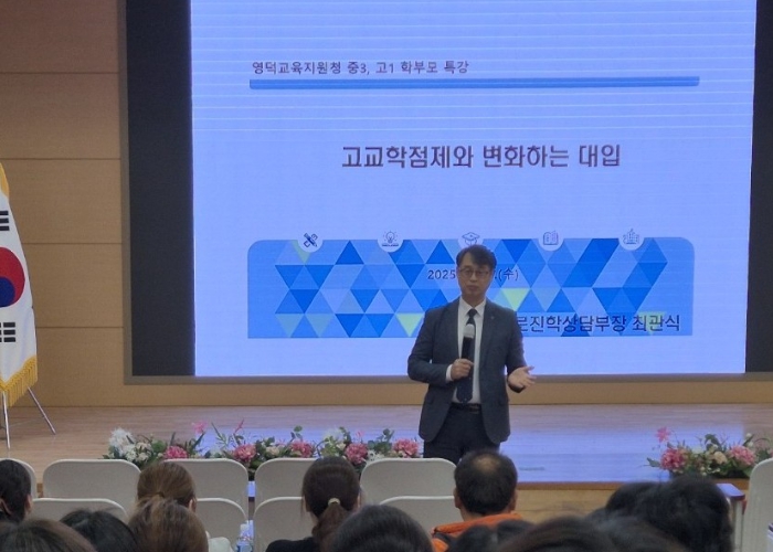 본 연수는 지역 학부모에게 올해 고등학교에 전면 시행되는 고교학점제와 고교학점제에 맞춰 변하는 대입 제도에 대한 이해를 높이고자 영덕교육지원청에서 주관했다. 당일 영덕교육지원청 초연관에서 오후 7시에 시작한 연수에 관내 중학교와 고등학교 1학년 학부모 60여 명이 참석해 많은 관심을 보였다.