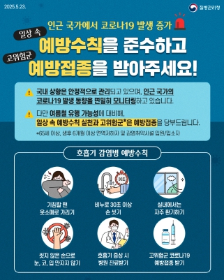 고령층 손씻기 등 예방수칙 준수 및 예방접종 적극 당부
