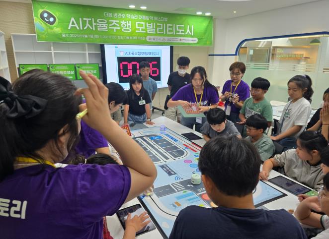 지난 11일 공공형 방과후학습관 '더봄'에서 진행된 '인공지능(AI) 자율주행 모빌리티 도시'는 초등학생 42명이 참가했다.