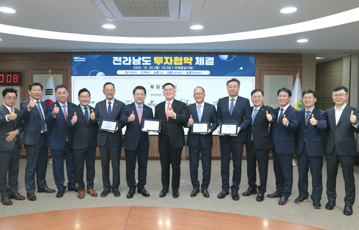 전남도청에서 열린 업무협약식에는 김영록 전남도지사와 명현관 해남군수를 비롯해 구본규 LS전선 대표, 이상호 LS전선 부사장, 홍영호 LS머트리얼즈 대표, 김병옥 LS마린솔루션 대표 등이 참석했다.