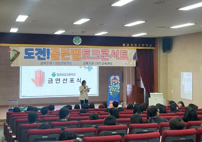 토크 콘서트를 통해 학생 스스로 흡연의 유혹을 거부할 수 있는 자기결정 능력을 키우는 것이 목적이다.