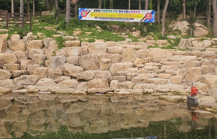 대덕읍행정복지센터에서는 용둠벙 계곡에 조성된 친수 공간을 안전하고 깨끗하게 보전 관리하기 위해서 급경사지, 위험공간에 안전 휀스를 설치하고 계곡 이용 시 안전수칙 안내 현수막을 제작하여 곳곳에 게첨했다.