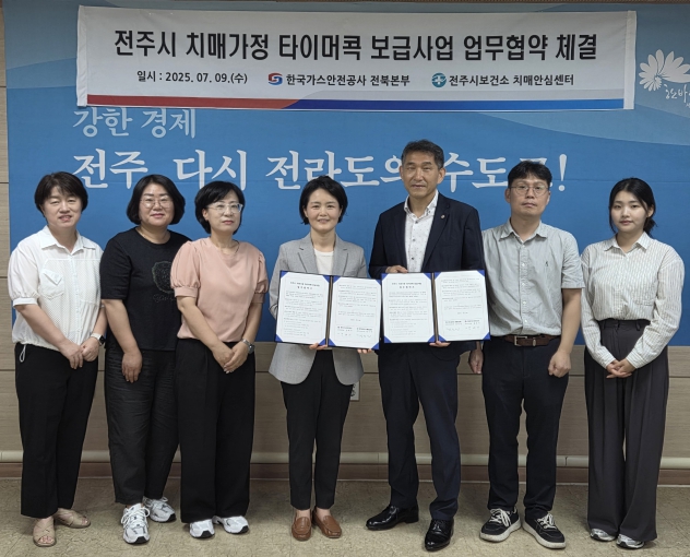 시와 한국가스안전공사 전북본부(본부장 강대기)는 9일 전주시보건소에서 김신선 전주시보건소장과 강대기 본부장을 비롯한 양 기관 관계자들이 참석한 가운데 ‘치매 맞춤형 사례관리 대상 가스안전장치 무료설치 지원 협약식’을 가졌다.