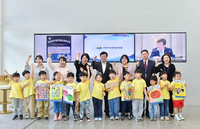 또, 시청 주차장 태양광 시설 2곳에는 ‘우리를 담배 연기로부터 지켜주세요’를 주제로 아동 483명이 참여한 금연 포스터를 전시하고 여수시청 직장어린이집 원생들과 금연 캠페인을 진행하며 눈길을 끌었다.