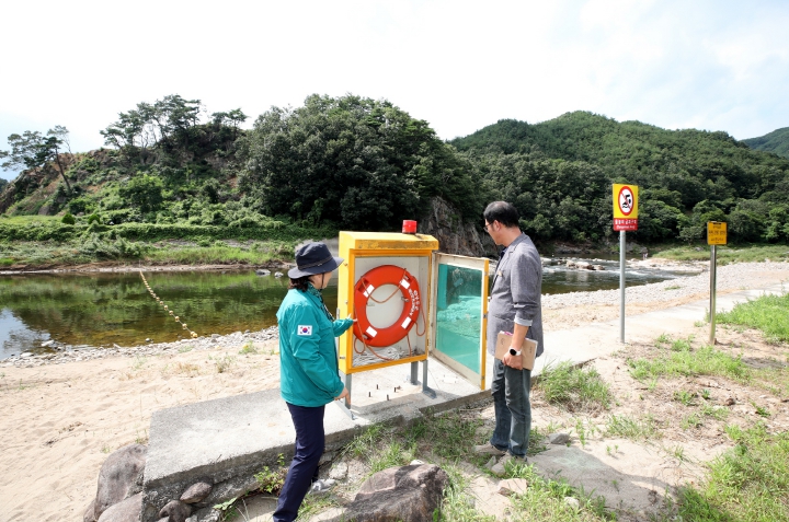 물놀이 안전관리계획을 기반으로 구명조끼와 구명환, 로프 등의 안전시설과 12곳에 설치된 위험구역 안내 표지판을 점검하고 있으며 부표도 설치 중이다.
