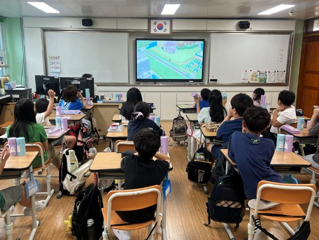 또한 KT와 행정안전부가 개발한 메타버스 기반 디지털교과서 ‘플레이스비’를 활용해, 가상공간에서 학생들이 직접 건물과 도로를 설치하고 도로명판과 건물번호판을 부착하는 체험도 진행됐다.