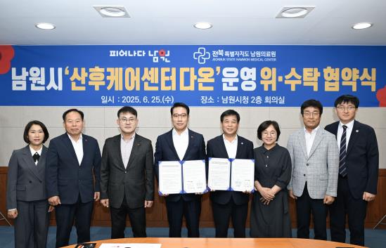 [무한뉴스=정민정 기자] 남원시는 산후조리원의 효율적인 운영과 활성화를 위하여 남원의료원과 ‘남원시 공공산후조리원 운영 위수탁 협약’을 2025년 6월 25일 시청 회의실에서 체결했다.