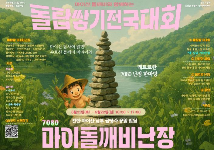 정난경 진안군청 관광과장은 “이번 ‘마이돌깨비 난장’은 마이산과 진안의 지역 자원을 활용한 이색 축제로, 돌탑 쌓기 대회부터 레트로 체험, 공연, 먹거리까지 전 세대가 함께 즐길 수 있는 다양한 프로그램으로 준비했다”며 “가족, 친구, 연인 모두가 함께 찾아와 소중한 추억을 만들고 진안의 새로운 매력을 경험하는 기회가 되길 바란다”고 말했다.