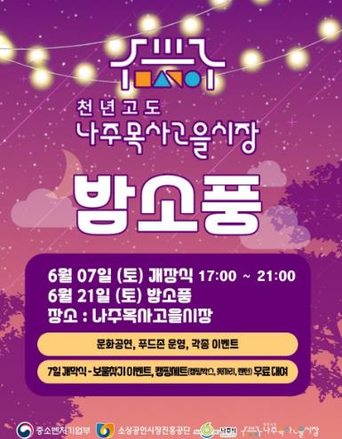 한편 이번 행사와 관련하여 윤병태 나주시장은 “‘나주목사고을시장 밤소풍’의 성공적인 운영을 통해 나주목사고을시장은 물론 주변 상권 활성화를 도모할 수 있는 좋은 계기가 바란다”고 밝혔다.