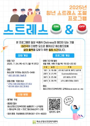 이에 화순군정신건강복지센터에서 ‘스트레스 온 앤 오프’ 프로그램을 진행한다.