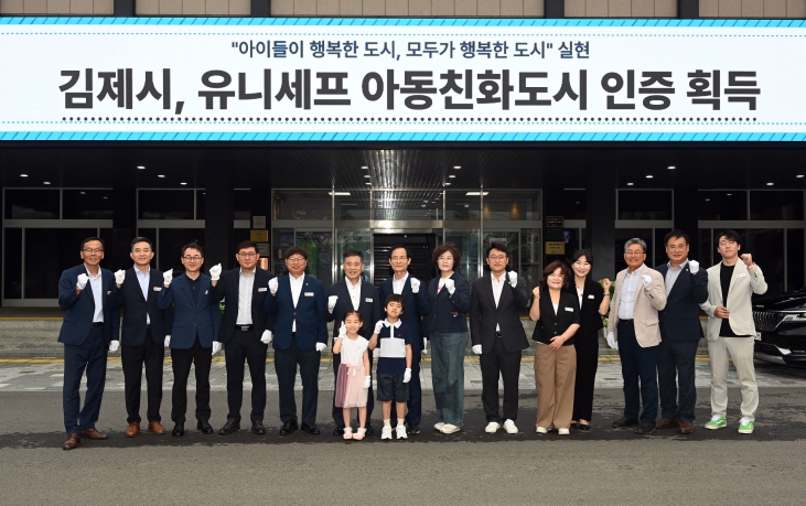 [무한뉴스=정민정 기자] 김제시는 25일 시청 본관 앞에서 ‘유니세프 아동친화도시 인증 현판 제막식’을 개최했다고 밝혔다.