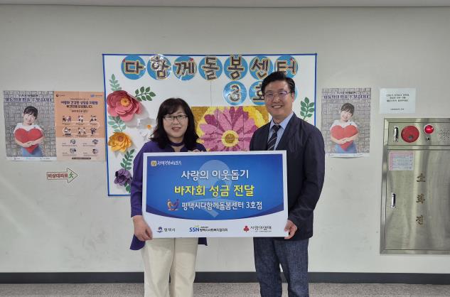| ▲ 평택시다함께돌봄센터 3호점, 평택행복나눔본부에 바자회 성금 전달 |
