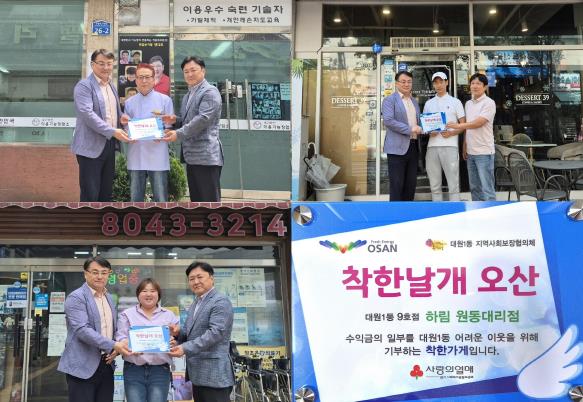 이번에 새롭게 착한가게로 참여한 곳은 김해성 남성컷트헤어, 디저트39 오산원동점, 참조은애의료기, 하림 원동대리점으로, 이들은 다양한 방식으로 지역사회의 따뜻한 나눔 실천에 함께하게 됐다.