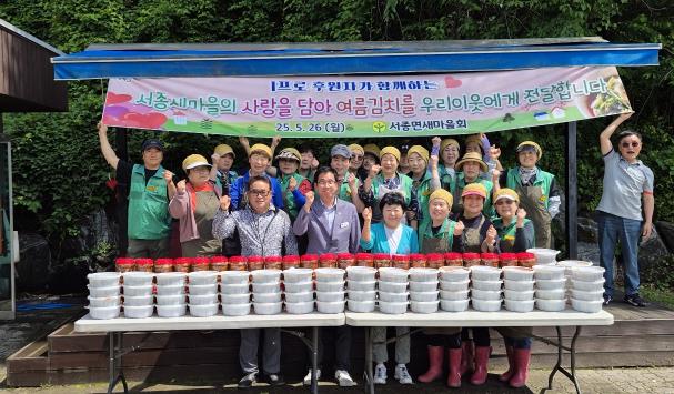 이날 행사에는 새마을지도자와 부녀회 회원 등 30여 명이 참여해 정성스럽게 김치를 담갔으며, 57가구에 2kg씩 열무김치, 배추김치 등 여름 김치를 전달했다.