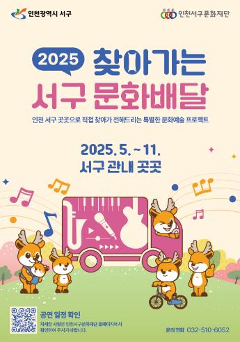 [무한뉴스=정승훈 기자] 인천광역시 서구청이 주최하고 인천광역시 서구문화재단이 주관하는 2025찾아가는 서구 문화배달 사업이 본격적으로 시작된다.